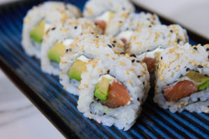 Salmón atlántico, queso crema y aguacate...